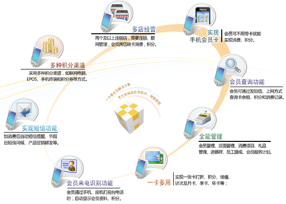(1) 支持條碼卡、磁卡、IC卡、ID卡等類型(支持手機號碼綁定,手機號碼即為會員卡號);