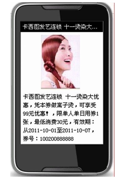 4、電子券與手機會員卡的結合:商家可將電子券功能與一卡易最新開發的手機會員卡相結合,免費的將店里的最新優惠信息圖文并茂的發送給會員,拓展銷售宣傳渠道,會員消費時只需輕輕松松的刷下手機便能獲得相應的優惠政策。