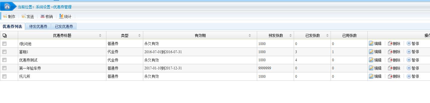 5、管理優惠券中可查看已發優惠券和待發優惠券等功能,同時,可核銷查詢會員優惠券。