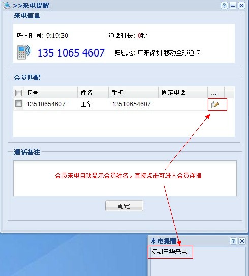 (1)來電自動彈出會員資料,包括基本資料、積分、儲值卡余額和詳細消費記錄;