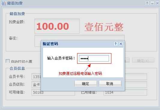 (4)支持會員通過電話遠程輸入密碼扣費消費;