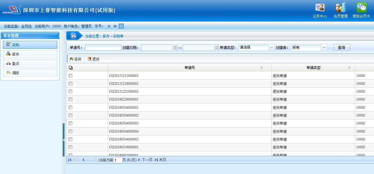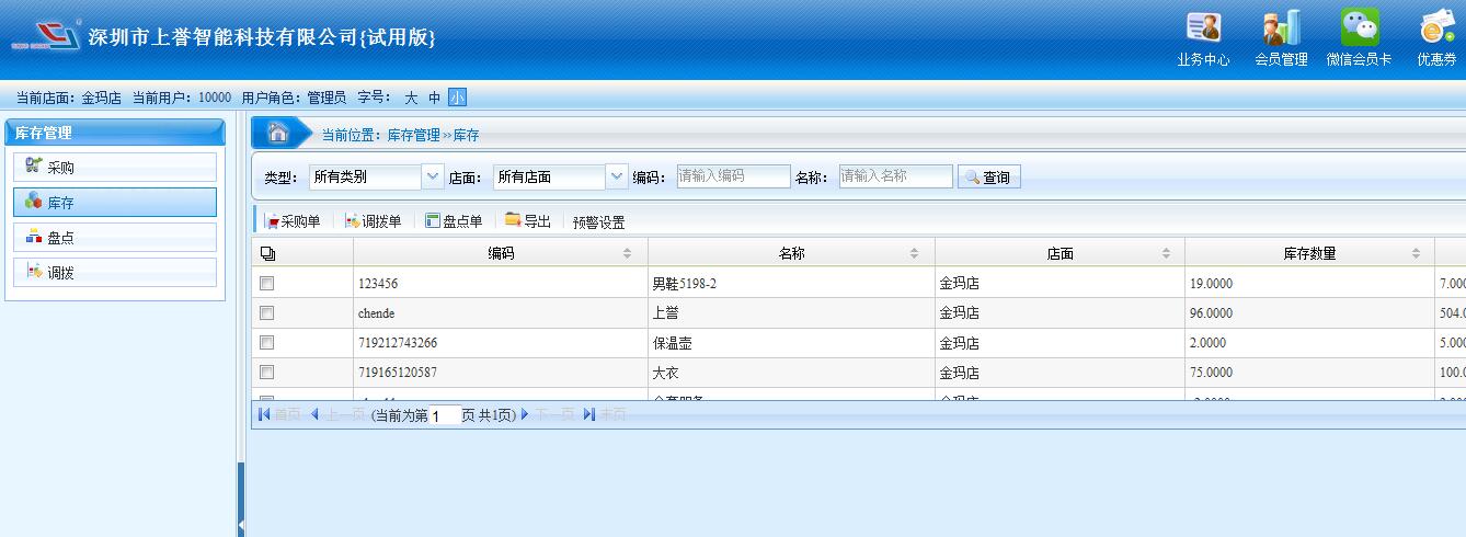 庫存:只要是管理采購單和調撥單、盤點單、導出以及預警設置等。