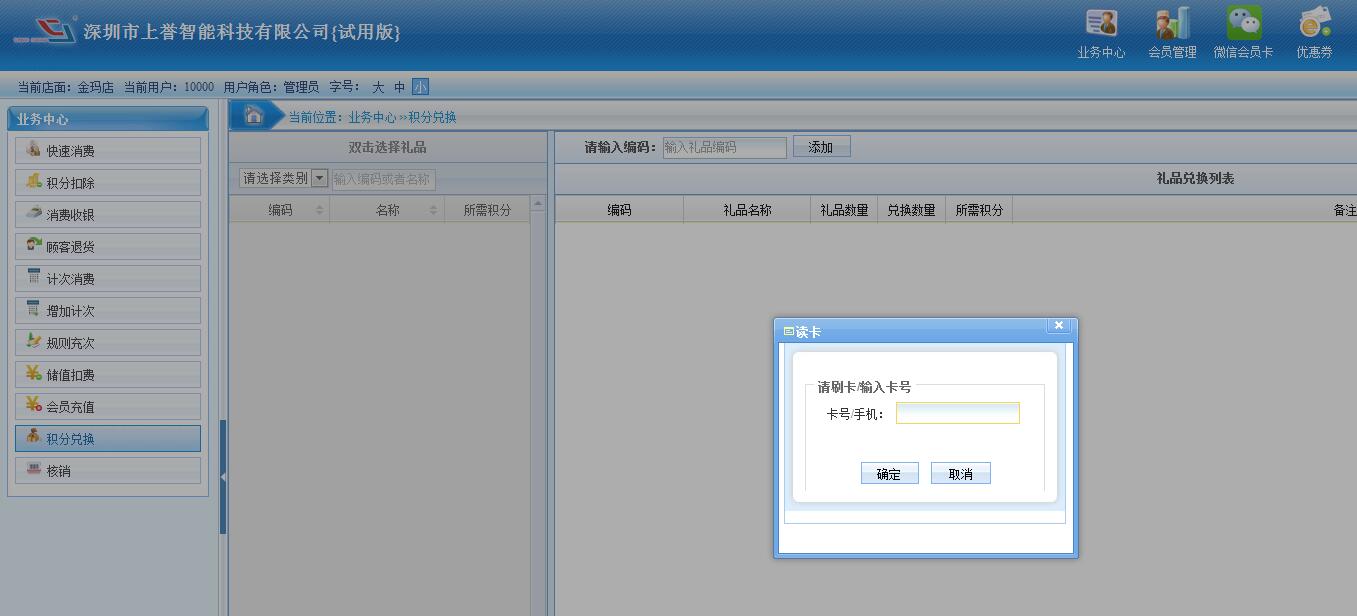 消費收銀:用于會員在消費中,選擇的商品以及消費總金額的消費收費使用。