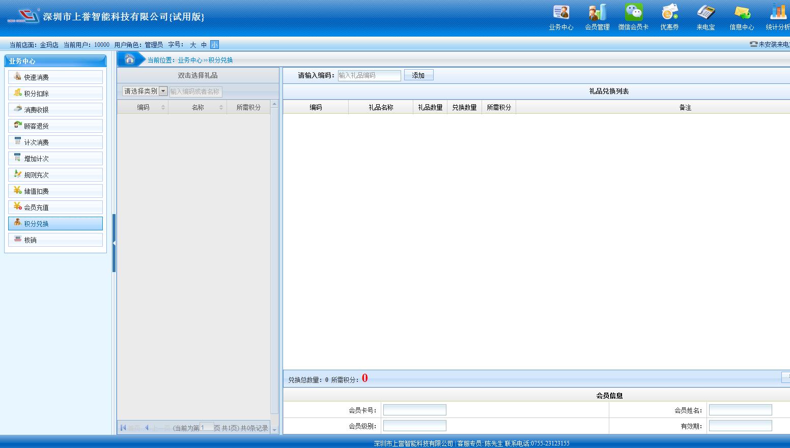 2、除了傳統的各種禮品外,上譽還支持積分兌換儲值,積分兌換計次,而且還可設置不同級別的會員兌換不同的禮品。