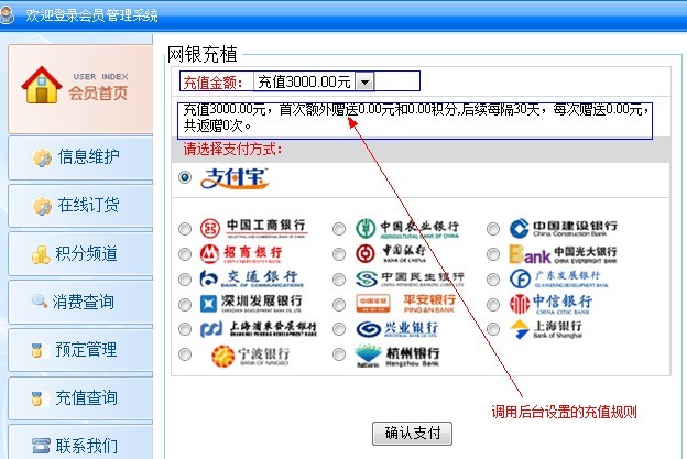 目前上譽(yù)會員系統(tǒng)支持店面充值和網(wǎng)銀充值兩種方式。 扣款時,支持店面扣款,電話遠(yuǎn)程扣款,網(wǎng)銀在線購物三種方式。 會員在貴公司網(wǎng)站登陸后,除了查詢積分和消費(fèi)記錄外,還可通過網(wǎng)銀在線充值,充值金額實(shí)時到帳會員卡內(nèi),馬上可以去商家消費(fèi)。極大的方便了商家和持卡會員。
