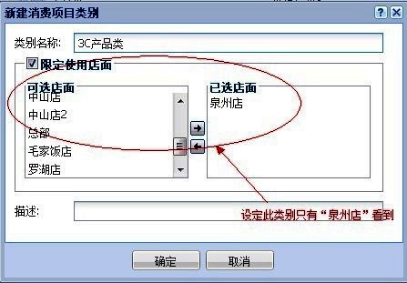 2、建立消費項目類別,設置歸屬店面: